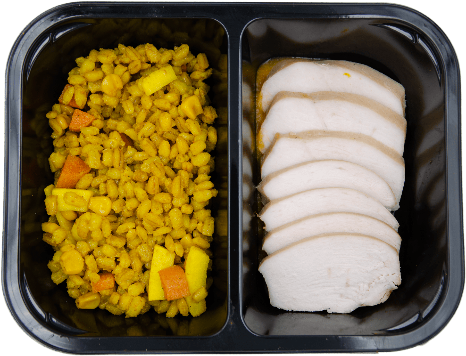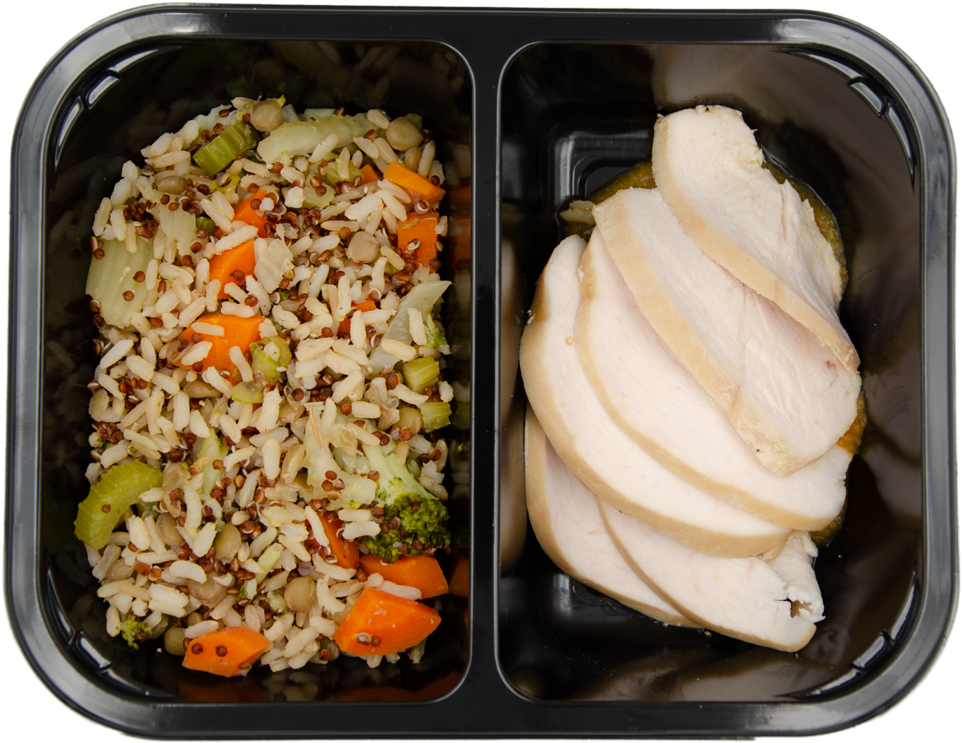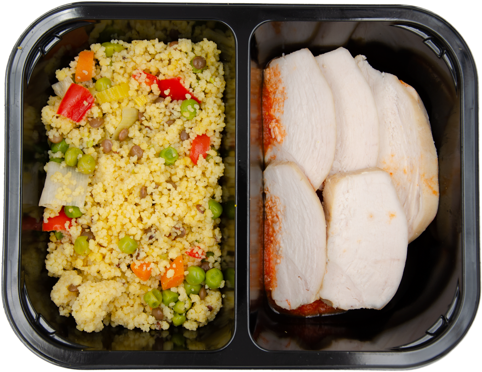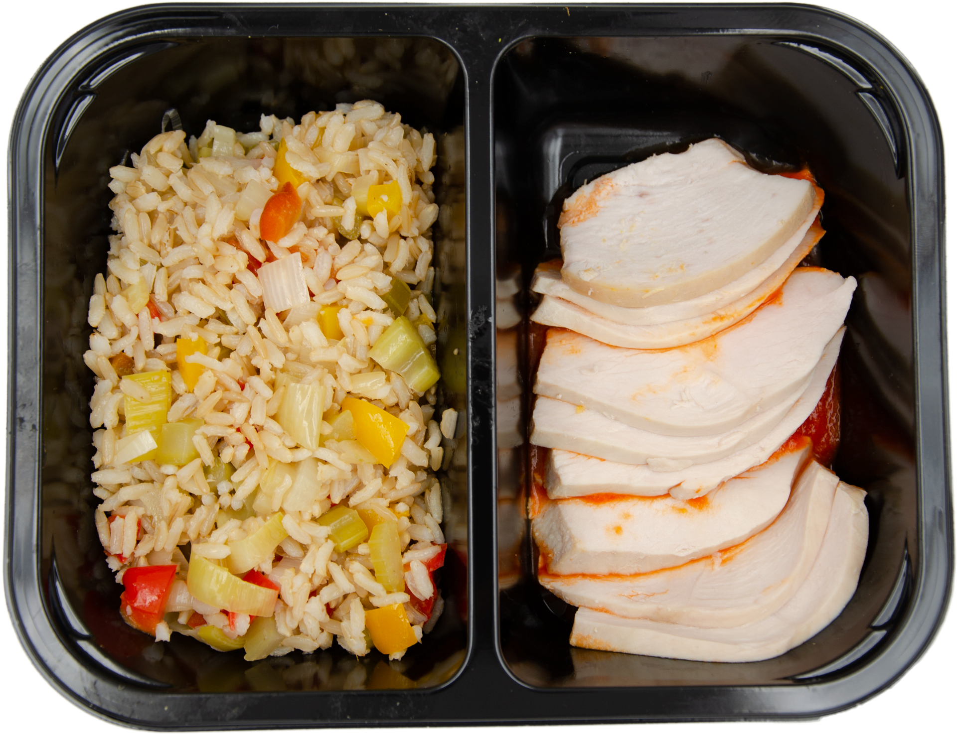 Imballaggio in CPET riciclato e riciclabile, scaldabile sia in microonde che in forno senza dover impiattare.